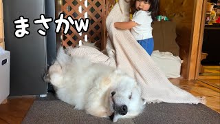 【爆笑】気持ち良さそうに寝ている超大型犬に2歳児が布団をかけようとしたらまさかの顔面に…!w|グレートピレニーズ&オールドイングリッシュシープドッグ&トイプードル 2024/9/5 犬 【爆笑】気持ち良さそうに寝ている超大型犬に2歳児が布団をかけようとしたらまさかの顔面に…!w|グレートピレニーズ&オールドイングリッシュシープドッグ&トイプードル 最近シュシュのことをお世話したくて 仕方ないろのちゃん 今日も寝ているシュシュに ろのちゃんが布団をかけてくれようと …