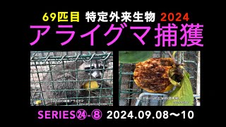 69匹目のアライグマ捕獲 2024 ⑧ HD 1080p 2024/9/12 アライグマ 69匹目のアライグマ捕獲 2024 ⑧ HD 1080p 久々の親アライグマ捕獲。 余程空腹だったようで周囲を彷徨いた後、器内に餌(吊し柿+桃)にかぶり捕獲.