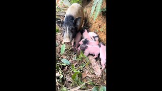 猪妈妈是急了吧窝都没拉好!天气变了带小猪猪回家暖被窝#跑山猪Mother Pigis in ahurry, isn'tshe?She hasn't even pulled up hernestyet!