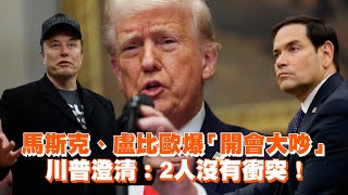 馬斯克、盧比歐爆「開會大吵」 川普澄清:2人沒有衝突! 2025/3/8 馬 馬斯克、盧比歐爆「開會大吵」 川普澄清:2人沒有衝突! 影片授權:US NETWORK POOL/AP 【相關報導】 馬斯克、盧比歐爆「開會大吵」裁員問題! 川普回應 …