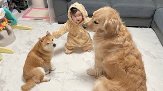 ママがいない間に得意の立ち姿を見せつける0歳児とその姿を見守る豆柴とゴールデンレトリバー 2025/3/18 犬 ママがいない間に得意の立ち姿を見せつける0歳児とその姿を見守る豆柴とゴールデンレトリバー Life with Shiba Inu and Golden Retriever うに(柴犬(豆柴))とおから(ゴールデンレトリバー)の成長日記です It is a …