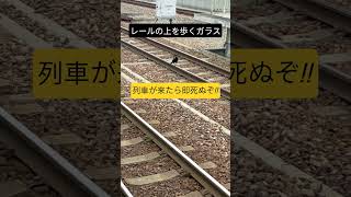 レールの上を歩く危険すぎるカラス #線路 #カラス #鳥