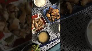 鶏肉の炭火焼きと豚バラを使った角煮もどき味付けたまご付きの煮物を美味しくいただきました