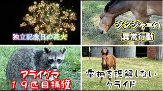 クライドは電柵を理解していない・ジンジャーの異常行動・アライグマ19匹目・アメリカの独立記念日の花火 2025/7/11 アライグマ クライドは電柵を理解していない・ジンジャーの異常行動・アライグマ19匹目・アメリカの独立記念日の花火 仔馬に電柵を教え込むのは難しいのかもしれません。ママから離れないので遠くには行かないのですが、倉庫の中には入って …