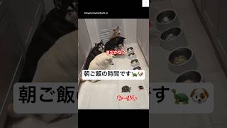 亀さんと犬たち、みんなで朝ご飯🐢🐶 #柴犬 #多頭飼い #犬 #亀 #犬のいる暮らし