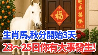屬馬人注意,明天23日「秋分」開始的三天,23日~25日你有大事發生!你知道嗎? #2025年生肖馬運勢 #2025年生肖馬運程 #2025年屬馬運勢 #2025年屬馬運程 2025/9/23 馬 屬馬人注意,明天23日「秋分」開始的三天,23日~25日你有大事發生!你知道嗎? #2025年生肖馬運勢 #2025年生肖馬運程 #2025年屬馬運勢 #2025年屬馬運程 屬馬的有緣人請注意,這是一個非常重要的提醒。從明天9月23日「秋分」節氣開始,接下來的連續三天,也就是23日、24日與25日 …