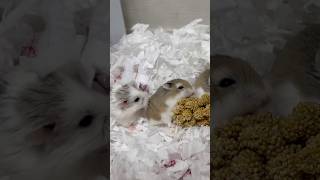 粟玉に群がるロボちゃんと…?🍑#ロボロフスキーハムスター