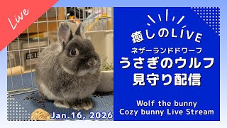 【今日のうさぎ 1/16】ウルフ(ネザーランドドワーフ)といっしょにまったり時間|Wolf the bunny (Netherland Dwarf Bunny) Live Stream 2026/1/16 うさぎ 【今日のうさぎ 1/16】ウルフ(ネザーランドドワーフ)といっしょにまったり時間|Wolf the bunny (Netherland Dwarf Bunny) Live Stream ウルフ(ネザーランドドワーフ)の見守りライブ配信へようこそ! 小さくて愛らしいうさぎ「ネザーランドドワーフのウルフ …