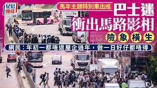 大年初一|巴士迷為影馬年主題特別車衝出馬路 險象環生驚動警方|星島頭條新聞|巴士|長沙灣|巴士迷|賀年巴士|新大嶼山巴士|馬年|1R|嶼巴 2026/2/18 馬 大年初一|巴士迷為影馬年主題特別車衝出馬路 險象環生驚動警方|星島頭條新聞|巴士|長沙灣|巴士迷|賀年巴士|新大嶼山巴士|馬年|1R|嶼巴 農曆新年是香港一年中最熱鬧的節慶時刻,有巴士公司為慶祝馬年來臨,將單層巴士變成賀年巴士,惟大批巴士迷為拍照衝出路面, …