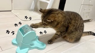 初見でオヤツが出てくるオモチャを完全攻略してしまうネコ