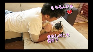 昨晩、夫が帰ってきた時。夫には玄関手前で一瞥くれて(さすがに誰が入ってきたかは確認する)、嬉しい報告は私に。夫、可哀想だけど犬可愛い。 pic.twitter.com/O5Cg4paKVT