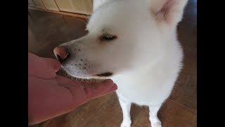 飼い犬に触ってる時のわたしの真似します。「かわいいでちゅ〜んゅ〜〜〜!!!!ドウチタンデチュカァ〜!!!!!!!かわいいでどちたどちた!?!かわいいでちゅねぇ〜!!!!ん〜ちゅむちゅ!!!」