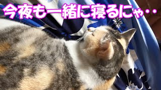 猫(こいつ…絶対起きてるよな…でも昨日遅くまで仕事してたし、鳴いて起こすのもな…でも腹減ったしな…)