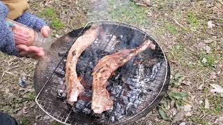 豚ロースにシソを巻いて塩コショウそして焼くだけ簡単!(私のレイド初日のご飯です🍖)