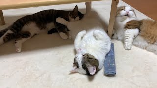 同じく猫好き一家の従兄弟宅から、おもちゃを頂いてきた模様。