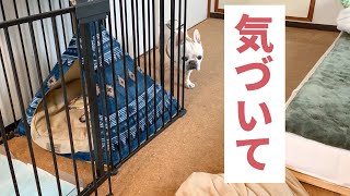 寝てる猫さんに気を使って動く犬さん。(ワーワー文句言われてる)