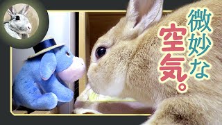 うさぎ、掃除機の音が嫌いだから掃除機かけたあとオヤツあげるんだが掃除機かける前からスタンバイしてる。