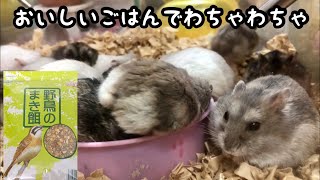 ハムスターは夜行性だから日中は寝てるんだけど、お腹がすくと起きてきておやつもらえるのを期待して数秒暴れ、もらえないと諦めて昨日の食べ残しのペレット(美味しくないらしく絶対残す)渋々持ち帰る、、