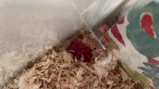 うちの子、もうすぐ2歳になるのでこちらをハムスタープラスと混ぜてあげているのですが、ハムプラは普通に頬袋にすぐ収納するのに、こっちのご飯はしばらく拒絶されます(–;)