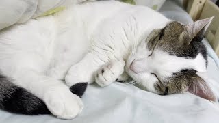 寝てるのが家族猫でカリカリ食べてるのが準家族☝️☺️まったく♪#102号室#ごはんだけの関係#ぬこ様#ネコ pic.twitter.com/YO79mKN05z