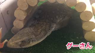 爬虫類に話しかける時はどもらないんだね。