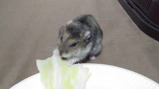キャベツを口に入れないように持ちながら…😂😂#ハムスター #ゴールデンハムスター #ハムスターのいる生活 pic.twitter.com/xagpcTNOKP