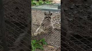 猫がめちゃ騒ぐから何何って見に行っったらデッッッッカイアライグマと目があったんだけど