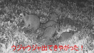 この前アライグマじゃなくて狸だと教えてもらったけど、たぬ吉くん3匹いてるやん!キャットフードやったらボリボリ食べてる。 pic.twitter.com/bbf15x7BjD