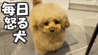この犬はソファを支配しているつもりになっています。だから近づくと吠える。犬に支配させてはいけません。全て人が支配します。 #dog