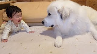 【大好き♡】甘えたくて仕方ない妹を受け止める超大型犬が優しすぎたw|グレートピレニーズ