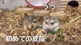 初めての豆苗🌱あげてみた反応が…【ロボロフスキーハムスター】