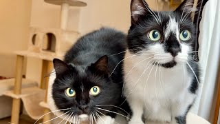 Cats vs Birds : Curious Cats at the Window 窓辺に鳥がやってきて大興奮な猫姉妹