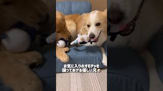 子犬にオモチャを譲ってあげる優しい兄犬はコチラ【ドギーボックス】