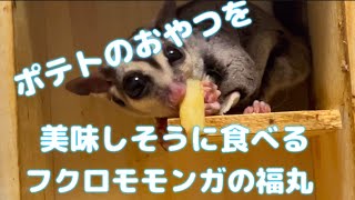 フクロモモンガの福丸…野菜スティックのおやつ🍟#フクロモモンガ #小動物 #哺乳類 #おやつ