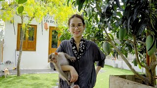 保護猿のコウくんとトビファミリーにある果物を収穫してきた