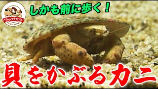 【ヒョイっとかぶって三度笠】貝殻を頭に乗せて前進するカニ!ヒラコウカイカムリの貝殻争奪戦で奇跡的な結末が…【どうぶつ奇想天外/WAKUWAKU】