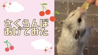 ハムスター♡さくらんぼデビュー!♡佐藤錦🍒