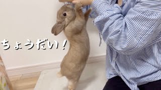 【ネザーランドドワーフ】初めてあげたオヤツに対してのウサギの反応が思ったのと違った件/好き嫌いハッキリしてるうさぎ/抱っこされるも気分が乗らない兎 #288