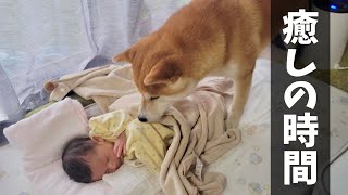 産後0ヶ月、何気ない日常に癒しと幸せを与えてくれる柴犬と赤ちゃん