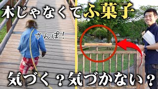 【お猿のカイくん】展望台の手すりの木材が実は「ふ菓子」ドッキリ!