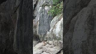 ベトナム ハロン湾生息の野生の猿。 断崖絶壁を登り下りします。 その姿はまるで世界最強のロッククライマー。