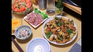 もみこ来たので、湯豆腐ともやし沢山敷いた豚の生姜焼きでもち麦ごはん。いただきいただき。
