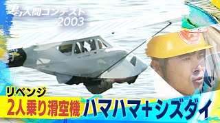 2年連続2人乗り滑空機で大空へ!【鳥人間コンテスト2003】「ハマハマ+シズダイ」リベンジなるか!? 2023/7/24 鳥 2年連続2人乗り滑空機で大空へ!【鳥人間コンテスト2003】「ハマハマ+シズダイ」リベンジなるか!? 2002年、鳥人間初の2人乗り機で鳥人間に挑んだ「ハマハマ+シズダイ」が”2年連続2人乗り機”で琵琶湖の空へ飛び出す!常識を …