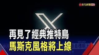 推特藍鳥Logo變X 馬斯克預告新商標明上線 失去新鮮感?Threads上線2周活躍用戶少7成|非凡財經新聞|20230723 2023/7/25 鳥 推特藍鳥Logo變X 馬斯克預告新商標明上線 失去新鮮感?Threads上線2周活躍用戶少7成|非凡財經新聞|20230723 推特的老闆馬斯克今(23)天發推文表示,要拿掉大家所熟知的藍色小鳥Logo,最快明天就會改成新的「X商標」。而有「推特殺手」 …