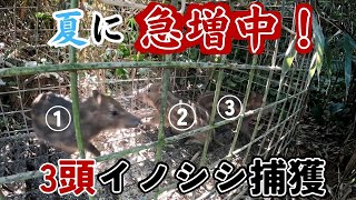 夏に増加中!イノシシ3頭を箱罠で捕獲! 2023/8/7 猪 夏に増加中!イノシシ3頭を箱罠で捕獲! 狩猟#イノシシ#箱罠 イノシシ被害を抑えるため梅雨明けの今から早期対策・捕獲をオススメします!イノシシは梅雨前後に出産し …