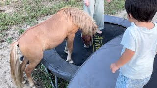 いっしょにトランポリンを跳ぶお馬ちゃん⁈配信 2023/8/31 馬 いっしょにトランポリンを跳ぶお馬ちゃん⁈配信 友人が遊びに来てくれたので、さっそくトランポリンの広場に向かったら… あれ!小さいトランポリンにロパちゃんの足跡 が …