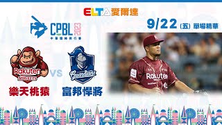 【精華回顧】9/22 樂天桃猿 vs. 富邦悍將 | 中華職棒34年例行賽 2023/9/23 猿 【精華回顧】9/22 樂天桃猿 vs. 富邦悍將 | 中華職棒34年例行賽 中華職棒34年【富邦/味全/統一】主場- 敬請鎖定▨ 中華電信MOD ➠ http://mod.cht.com.tw/ ▨ HamiVideo …