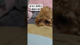 別れを惜しんでいる兄犬笑