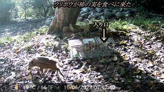 柿の木の下に仕掛けた籠罠にアナグマ・