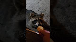 Sad eyed raccoon begs for a cookie 2023/10/30 アライグマ Sad eyed raccoon begs for a cookie A raccoon I call “Cutie” stood behind the patio door with sad eyes and begged for her favorite treat, a cookie. I opened the door …